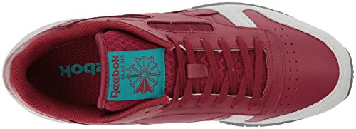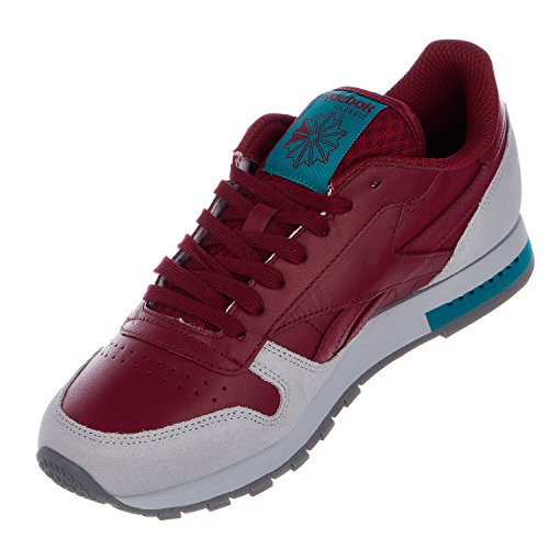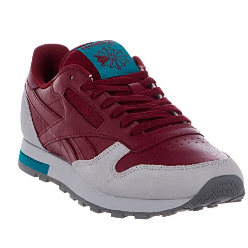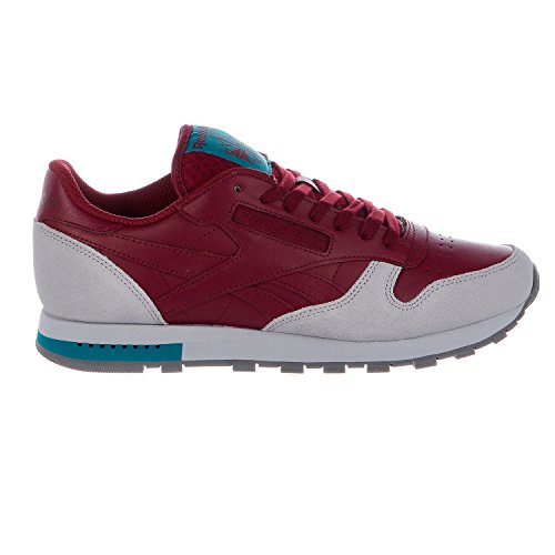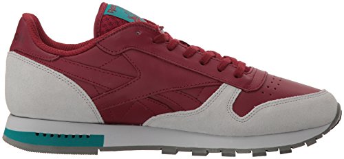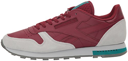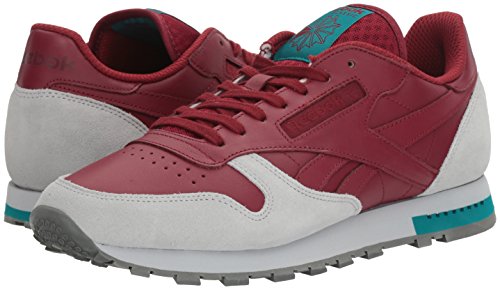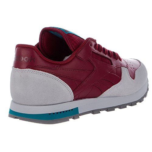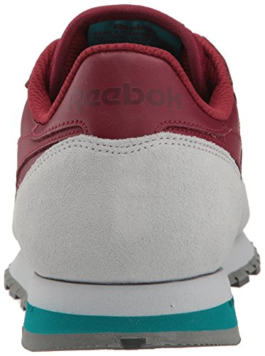 Reebok Men's CL Leather Grey Fashion Sneaker, Collegiate Burgundy/Cloud Grey/Alloy/Teal Green, 9.5 M US