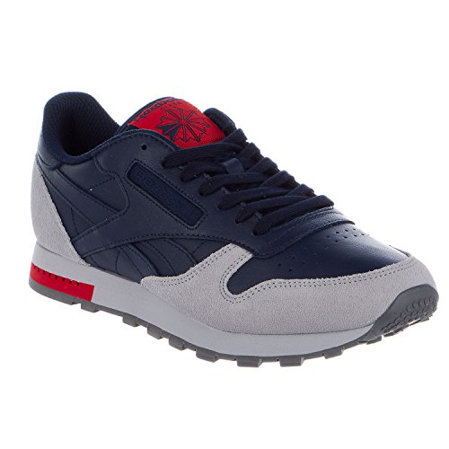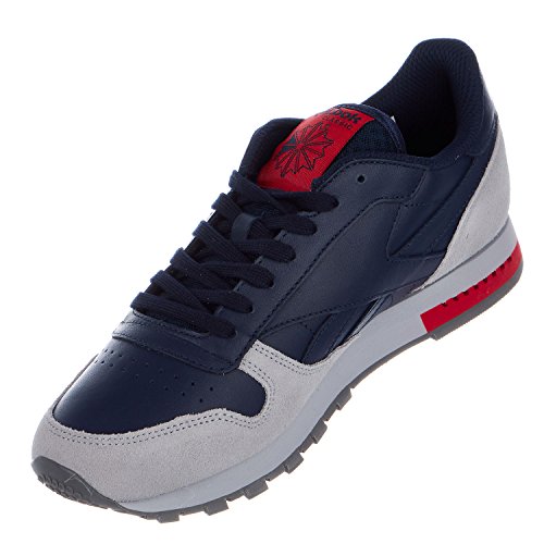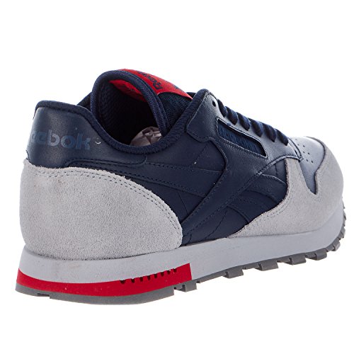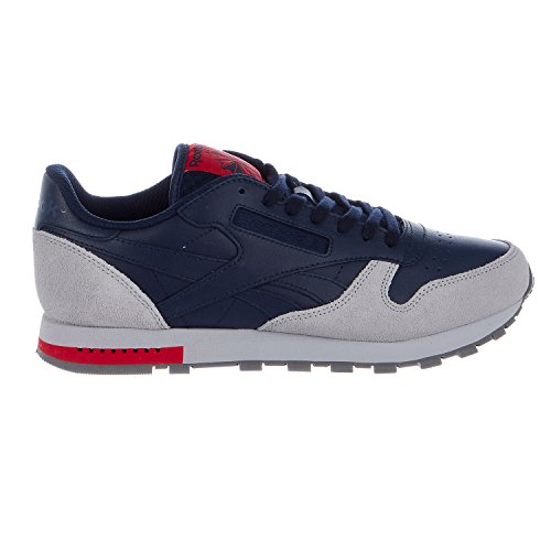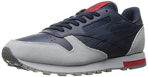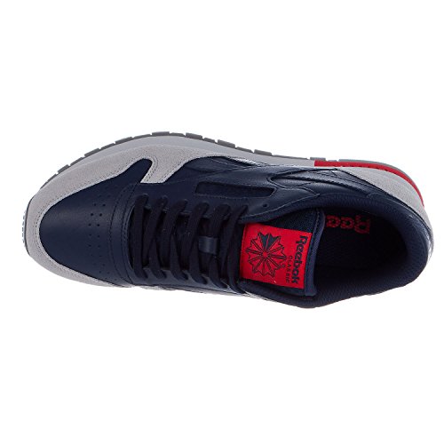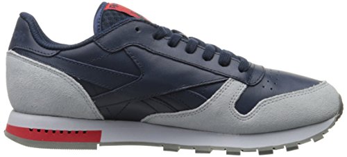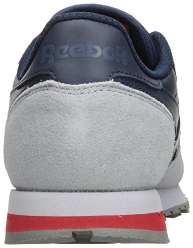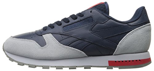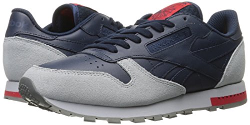 Reebok Men's CL Leather Grey Fashion Sneaker, Collegiate Navy/Cloud Grey/Alloy/Primal Red, 9.5 M US