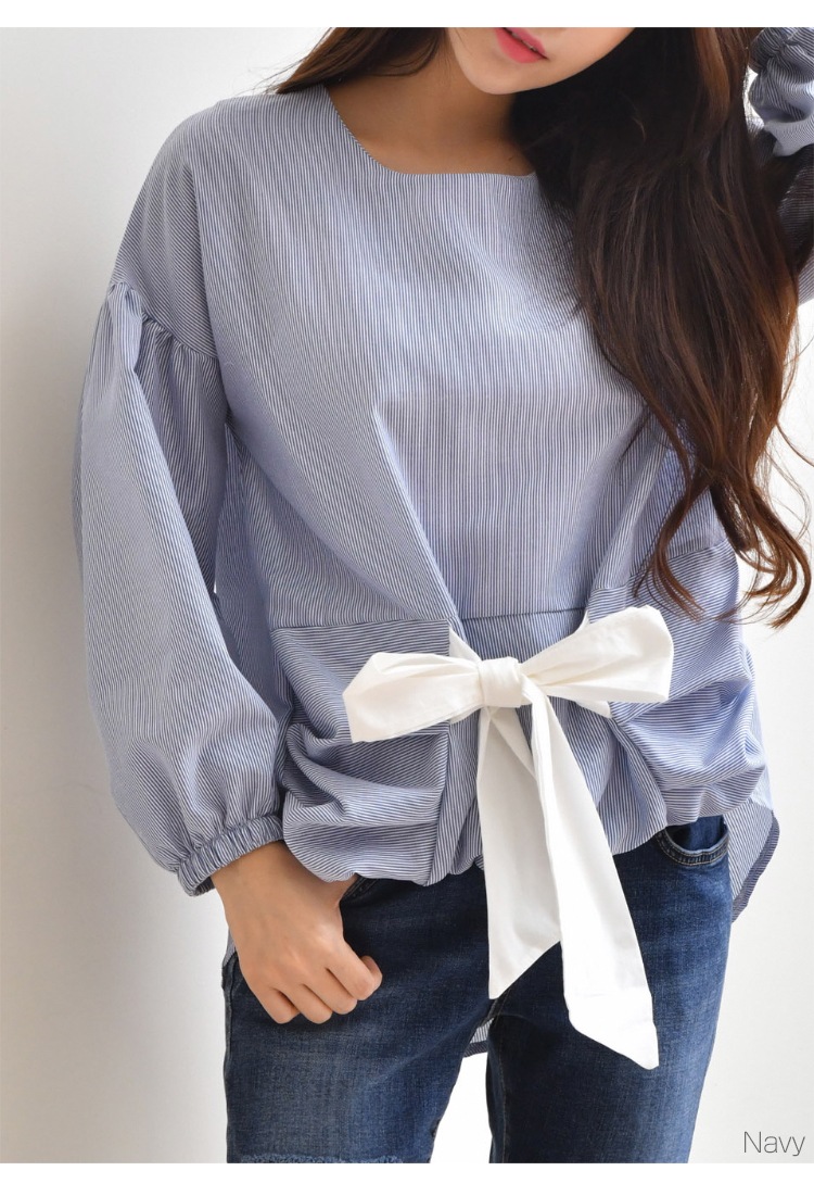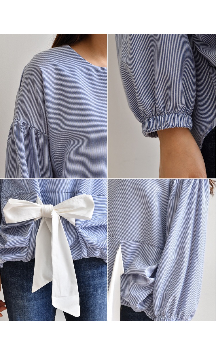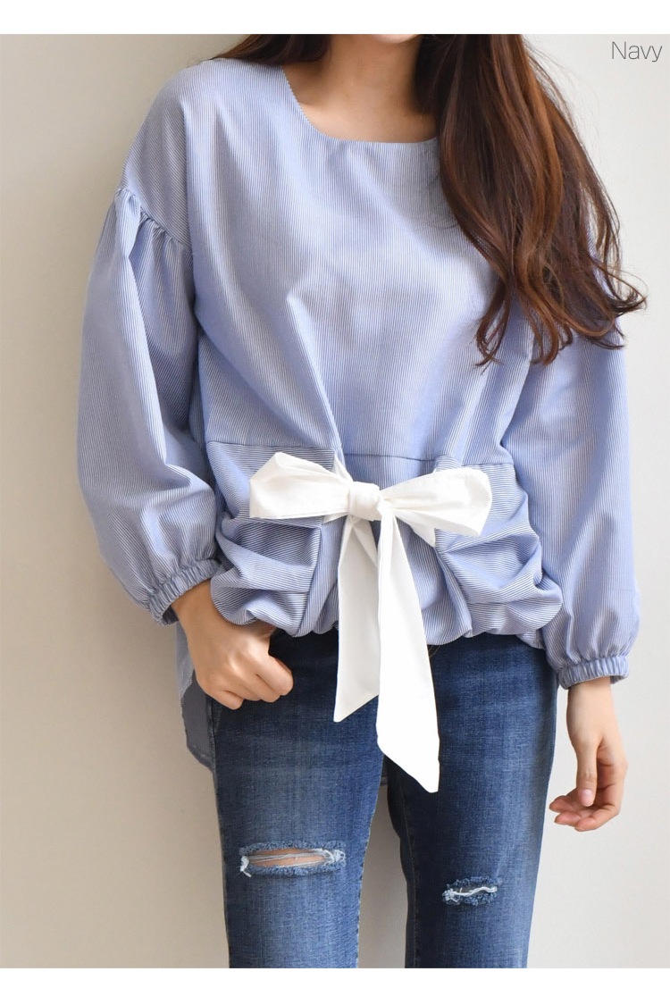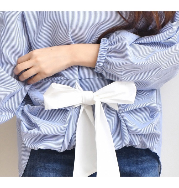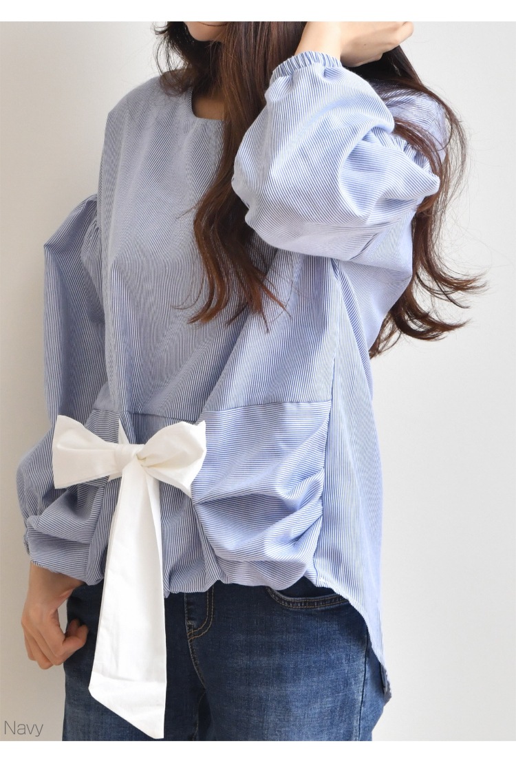ウエストで結んだリボンが目を引く女性らしい雰囲気のブラウス☆