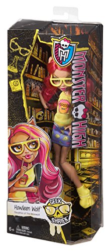 -. Binding : Toy -. Brand : Monster High -. Color : Yellow, Pink, Blue -. EAN : 0887961063820 -. Feature : Smart ghouls rule! But using your intelligence doesn't mean you have to lose your sense of style! / The ghouls of Monster High have decided to embrace their "inner geeks" in the most fashionable way possible! / Howleen Wolf, daughter of The Werewolf, is fiercely fashionable in an outfit with a graphic decal on the color-blocked top and colorful P.R.Int on the skirt / She completes her geek shriek look with yellow booties and matching wolfish eyeglasses that make furrific accessories / Collect them all to expand the play and display possibilities -. IsAdultProduct : 0 -. ItemPartNumber : CGG95 -. Label : Monster High -. LegalDisclaimer : No sending in Russia -. Manufacturer : Monster High -. Model : CGG95 -. MPN : CGG95 -. PackageQuantity : 1 -. PartNumber : CGG95 -. ProductGroup : Toy -. ProductTypeName : TOYS_AND_GAMES -. Publisher : Monster High -. Studio : Monster High -. Title : Monster High Geek Shriek Howleen Wolf Doll -. UPC : 887961063820 -. Warranty : No Warranty