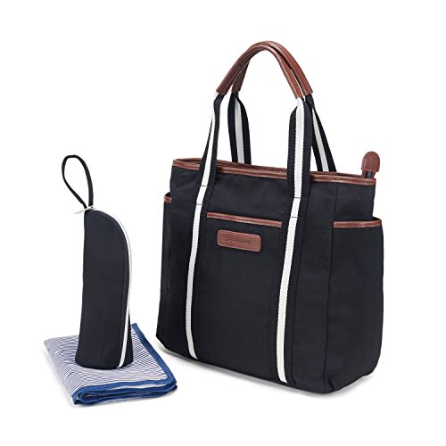 100% Satisfaction Guarantee. Any problem please feel free to contact us. Baby Nappy Changing Bag Mom Handbag Baby Diaper Tote Bag Features: *Material: Nylon, High quality waterproof fabric and abrasion resistance *Color: Black *Big opening for big bag with high quality zipper *It is easy to put and take out things when management. *Make your bag fashion and lovely. Design and construction *??9 Pockets * 1 large bag with size 37*16*34CM/14.6*6.3*13.4 Inches * 1 lunch bag:To make clean by putting food separately. * 1 bottle bag:To put nursing bottle inside. * 1 changing mat:Changing the diaper for baby or Sitting on it for mom during trip. Remark:Different division and pockets to make everything separate from Mom and Baby.