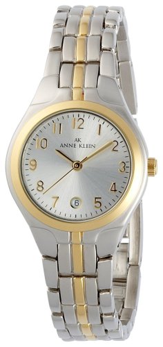 Studio : Anne Klein Publisher : Anne Klein Binding : Watch Amazon.com Stunning silver-and-gold-tones add sophisticated touches to the AK Anne Klein Women's Two-Tone Dress Watch #105491SVTT. A polished metal silver-and-gold-tone band measures 12 millimeters wide and joins to a 27-millimeter metal case. A gold-tone bezel beautifully frames a silver-tone dial. Gold-tone Arabic numeral hour indicators and gold-tone hands are offset by black stick minute markers. 0