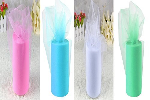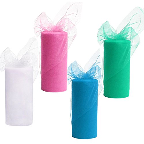 4Pcs Tulle Rolls fabric Spool Ribbons 6 x 900 Inch (25 Yards Each) for DIY Craft, Gift Wrapping, Decoration, Clothes - 4 Colors