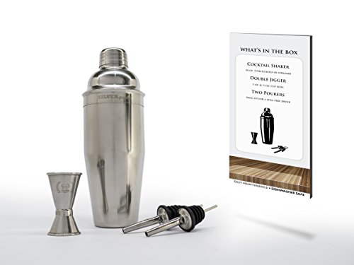-. Brand : SILVERgrade -. Color : Silver, Mirror Finish -. EAN : 0758736099378 -. Feature : Want to DAZZLE your Friends at the next party? Amaze your partner with a tasty drink at your next romantic dinner at home? It's just a Click Away. / BEST OFFER! - Get the PERFECT bar set for your home or give it as a gift, our Special Bundle SET has all you will ever need: Premium 3-piece Cocktail Shaker with Built-in strainer, Double Jigger AND 2 Bottle pourers at no extra cost. / QUALITY! - Highest quality on the market, all pieces are made from Stainless Steel 304 grade 18/8 - You can trust our set to last a lifetime Rust Free. / VERSATILE! - With so many ideas and tasty recipes, options are endless, whenever you looking to make yourself a delicious Cosmopolitan , relax with a cold Whiskey Sour after a long day, or surprise friends and family next time you entertain, everything you need is already here. / KEEP SMILING! - Our Beautiful Set is DISHWASHER SAFE and comes with 100% Satisfaction and Lifetime Guarantee, Whatever, Whenever, We got your back, All you need to do is contact us, and we will take care of the rest, NO QUESTIONS ASKED!! -. Label : SILVERgrade -. Manufacturer : SILVERgrade -. MPN : GZ043SG00103 -. PackageQuantity : 1 -. PartNumber : GZ043SG00103 -. ProductGroup : Kitchen -. ProductTypeName : KITCHEN -. Publisher : SILVERgrade -. Size : 24OZ / 750ml -. Studio : SILVERgrade -. Title : Premium SST Cocktail Shaker Set Bundle w/ Jigger, Pourers and over 50 Recipes / 24oz Martini Bar Kit -. UPC : 758736099378 -. Warranty : Lifetime Warranty, Requires Registration within 14 days of purchase