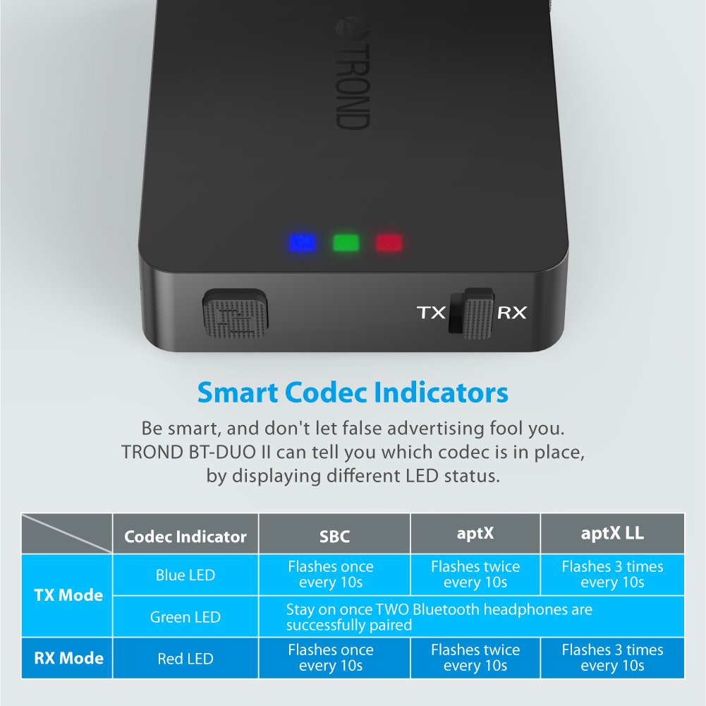 Unlike other brands, TROND BT-DUO II added aptX LL & aptX to the receiver mode.