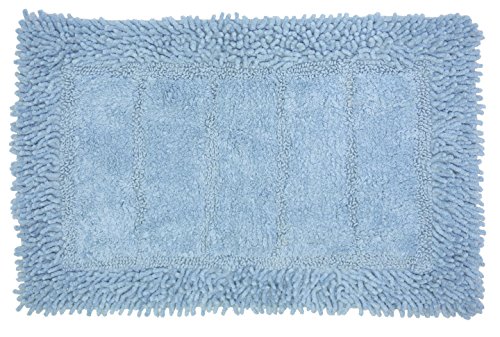 Spura Home 27"x45" Cotton Sky Shag Border W/Vertical Striped Center Bath Mat