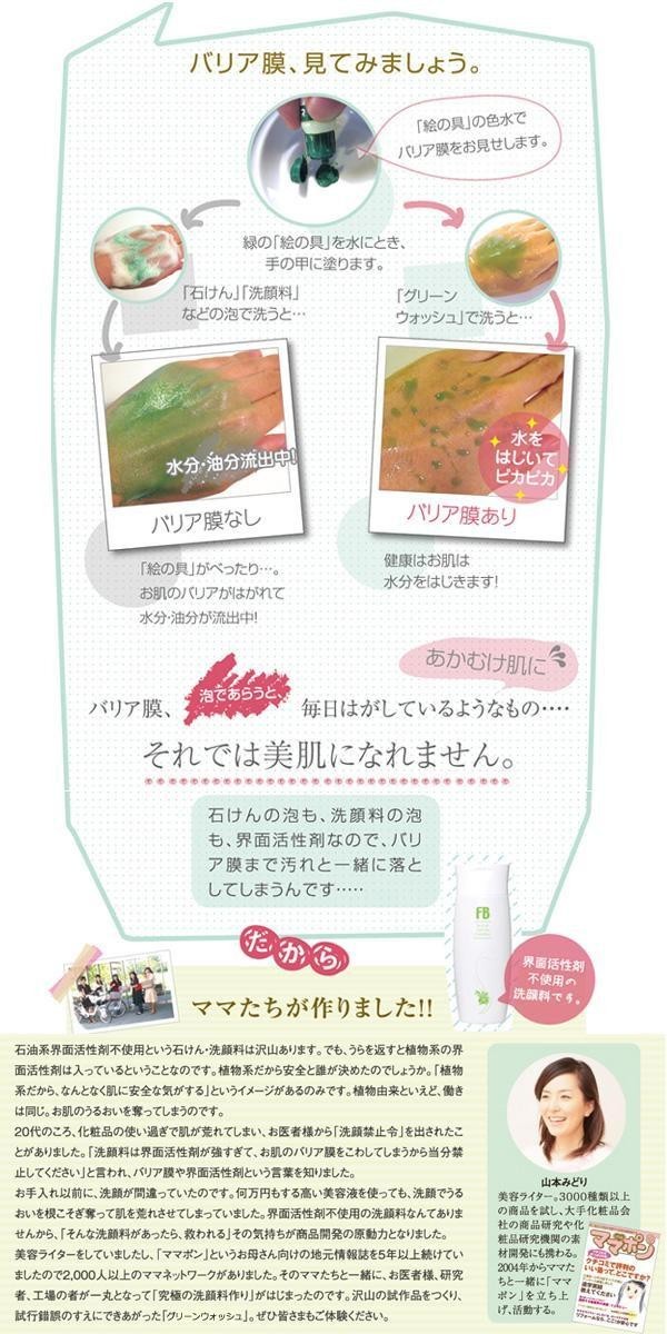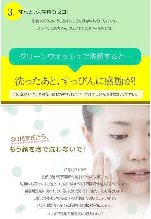 | 大変貴重なシロキクラゲ多糖体水溶液を90%も配合した洗顔料です。石油系はもちろん植物系界面活性剤も一切使っていません!!「グリーンウォッシュ」で、うるおいに満ちた肌に♪ |