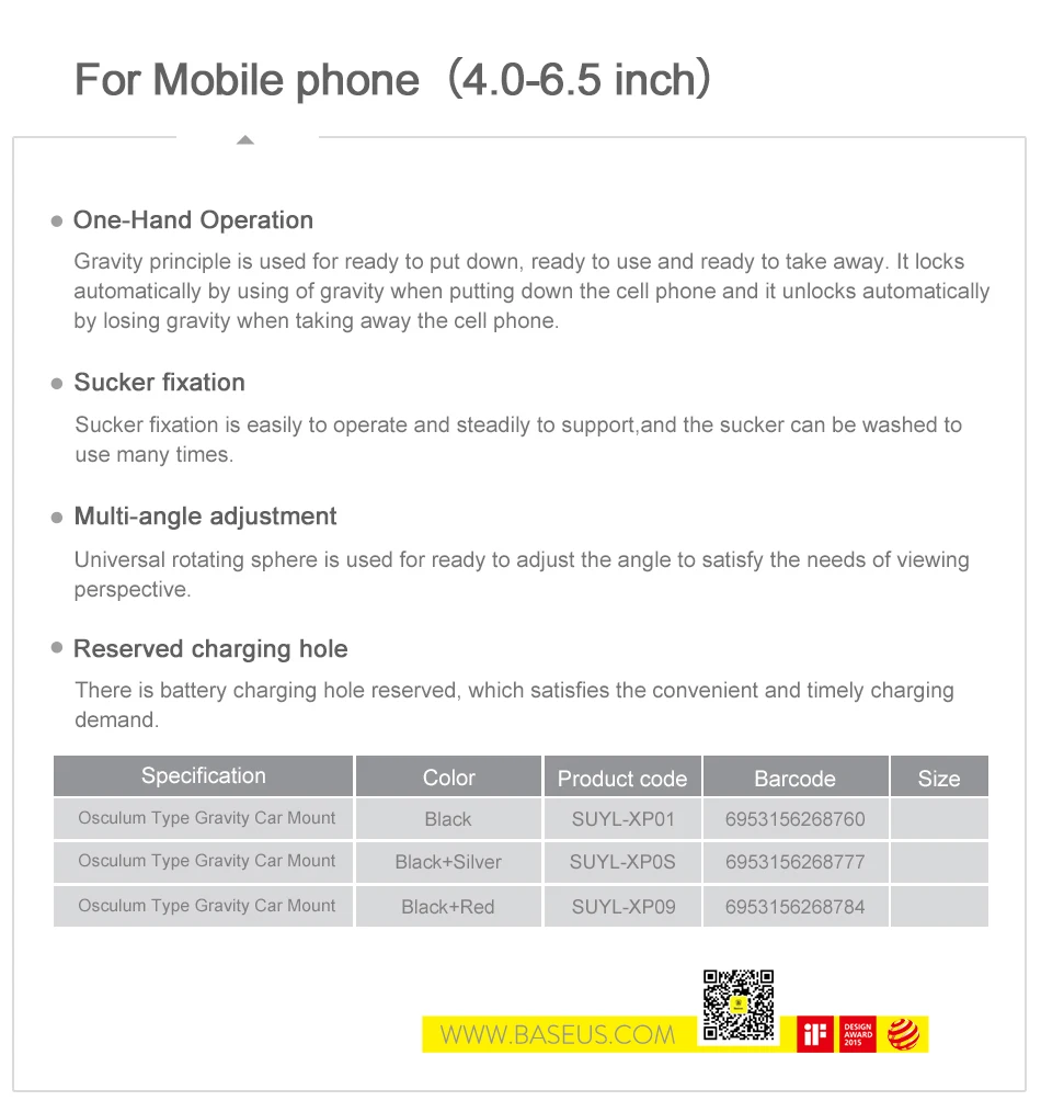 Suitable:For 4.0-6.5 inch Mobile Phone Baseus Holder