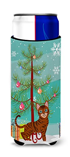 Caroline's Treasures Toyger Cat Merry Christmas Tree Michelob Ultra Hugger For Slim Cans, Slim Can, Multicolor