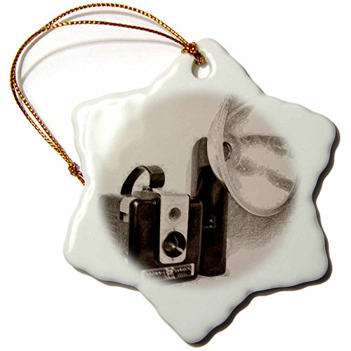 3dRose orn_20728_1 Picture of a Vintage 1950S Camera with Bulb Flash Porcelain Snowflake Ornament, 3-Inch