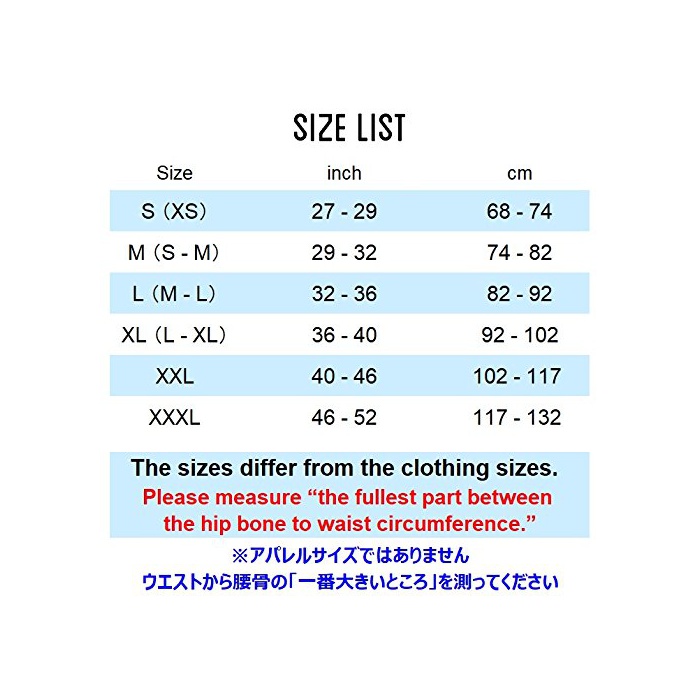 적응 사이즈(웨스트에서 허리뼈의「제일 크다고 무렵」를 실측해 주십시오): S(68cm~76cm) M(74cm~82cm) L(82cm~94cm) XL(94cm~105cm) XXL(105cm~120cm)XXXL(120cm~140cm) ★사이즈 교환으로 옵니다!(죄송해하지만,반품시의 우송료 만 부담해 주십시오) 저가격 실현 를 위해,본품에 팩키지는 없습니다.본 제품,설명서를 OPP봉투에 만들어 넣음(담는 그릇·상자 등) 짐을 꾸렸다, 심플한 외장 에서의 배송과 됩니다