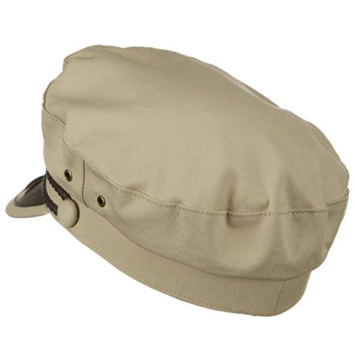 - Feature : Khaki Captains Hat / Faux Leather Braided Trim And Brim Accents / Sized To Fit Most Adults (56-57cm) / 100% Cotton / Makes A Great Gift