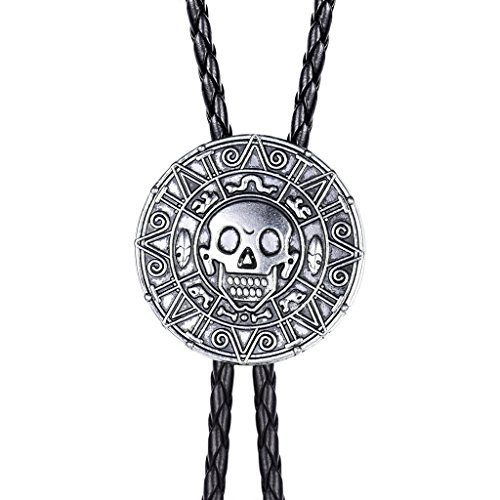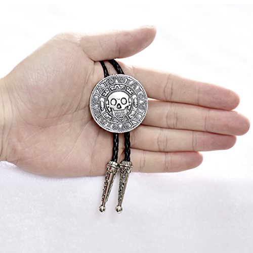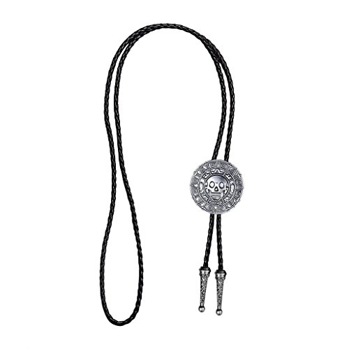 MASOP Antique Western Zinc Alloy Round Men's Skull Bolo Tie Necktie Silver Color