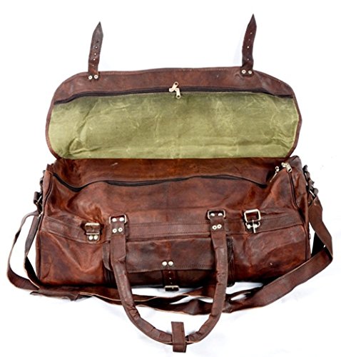 -. Feature : New genuine leather Duffel bag / Travel Bag handcrafted with vintage style / 1 front pocket, Top Protective Flap and Big Main Zipper compartment and 2 side pocket / Dimensions: 24 inches (length), 11 inches (height), 11 inches (depth) / Strong & durable brass fittings & buckles, quality zippers, heavy duty lining / Adjustable shoulder Strap , Big main compartments for clothing /travel and sports gear etc, Two Side pockets for accessories etc. Front pocket for cash /mobile