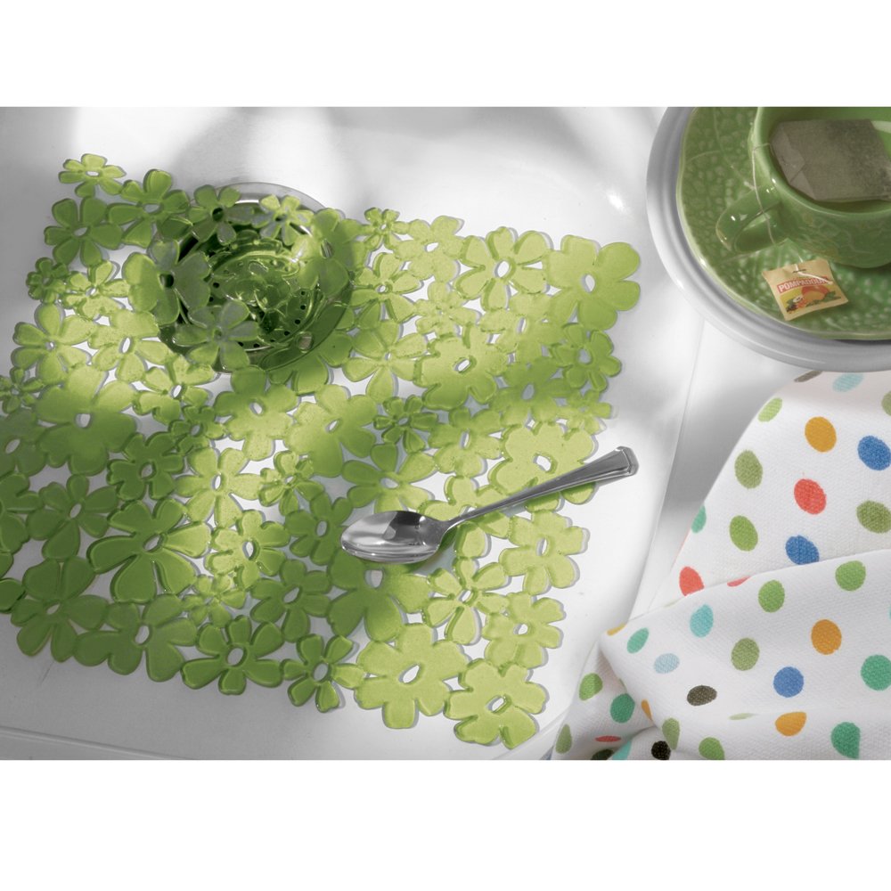 Add grip and cushioning to your sink with this PVC sink mat. Large-sized mat measures 12.5 by 16-Inch, but can be sized down for smaller sinks by cutting away flowers. Pair with other members of the Blumz line of products by InterDesign.