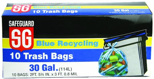 Safeguard 1052 Blue Recycling Tall Kitchen Bags, 1-Feet 11-1/2-Inch by 2-Feet 4-1/2-Inch