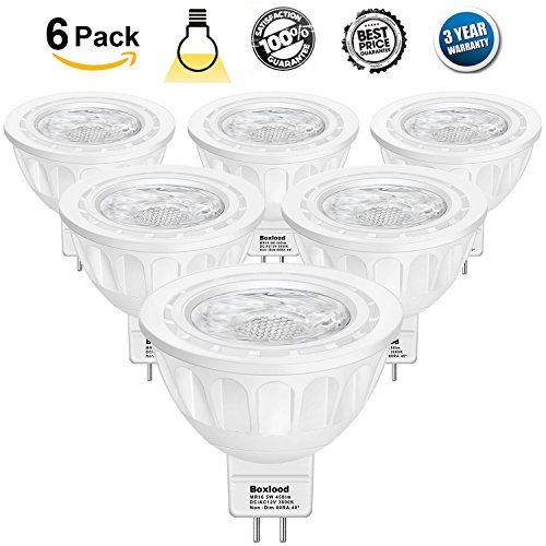 Boxlood MR16 LED GU5.3 LED 12V MR16 3000K Warm White CRI80 Non Dimmable LED Light Bulb MR16 LED Bulb 6 Packed