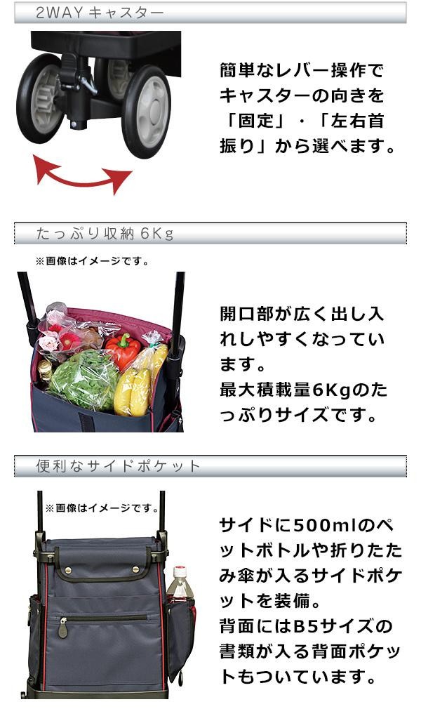 | 仕様 | SGマーク取得済 積載量:6kg バッグサイズ:幅25.5×奥行16×高さ37cm 車輪サイズ:直径13.5cm |