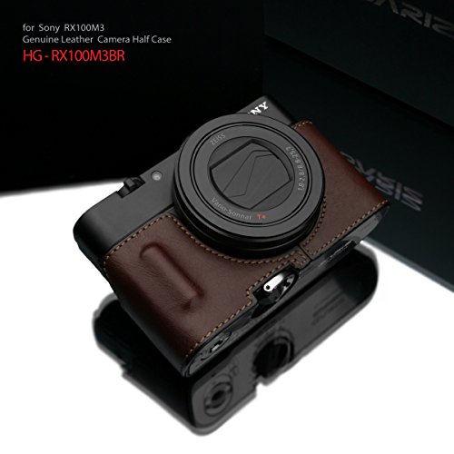 Gariz Genuine Leather HG-RX100M3BR Camera Metal Half Case for Sony RX100III RX100M III with Hand Grip, Brown