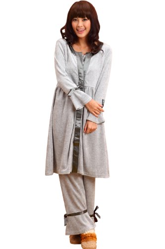 -. Title : Sweet Mommy 濃密コットンベロア サテンパイピング あったか起毛 ベルスリーブ 授乳レイヤー 上下 3点セット ウエスト調節機能 アジャスター ボタンかぶせで赤ちゃんも安心 厚手 秋冬 上品 袖裾リボン 授乳 ナイティ パジャマ 入院 マタニティ 授乳服