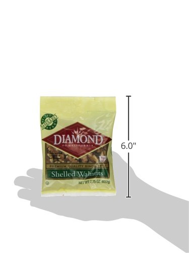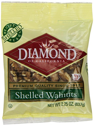 Pack of 12, 2.25-oz bags (1/2 cup) of Diamond of California Shelled Walnuts^100% California Grown^Diamond of California has offered fresh, high quality and great tasting nuts for over a 100 years^Unseasoned and ready for baking, cooking, snacking and using as a topping^Kosher Certified