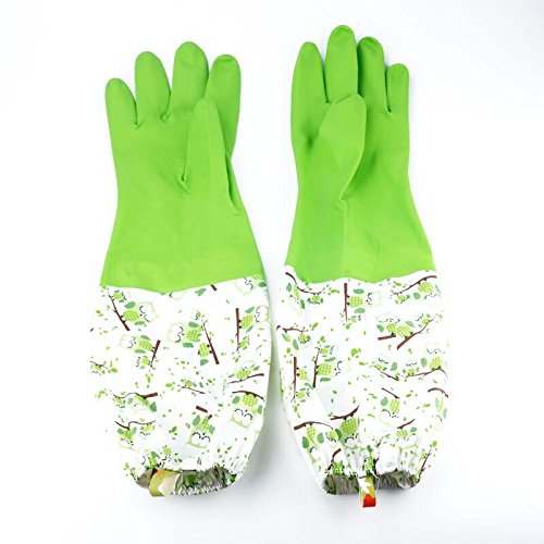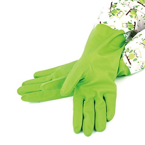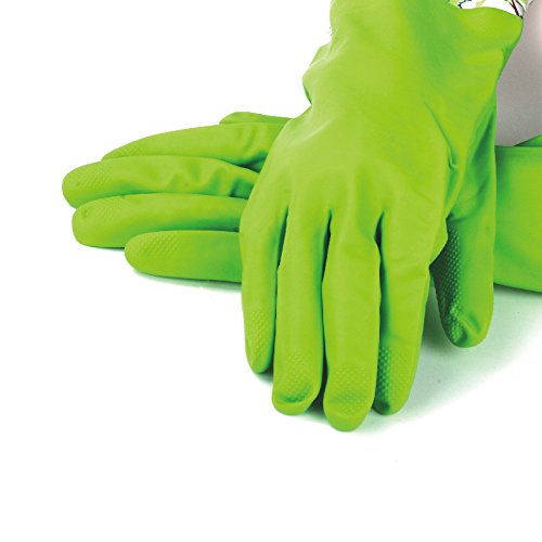 Mackertop Rubber Kitchen Latex Gloves Waterproof Cleaning Gloves with Lining, Dish Washing Laundry House Cleaning Gloves (Green)