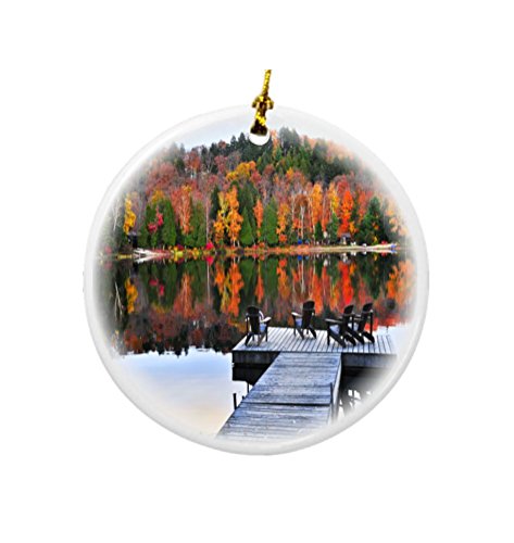 Rikki Knight Wooden Adirondack Chairs on Dock on Autumn Lake Design Round Porcelain Two-Sided Christmas Ornaments