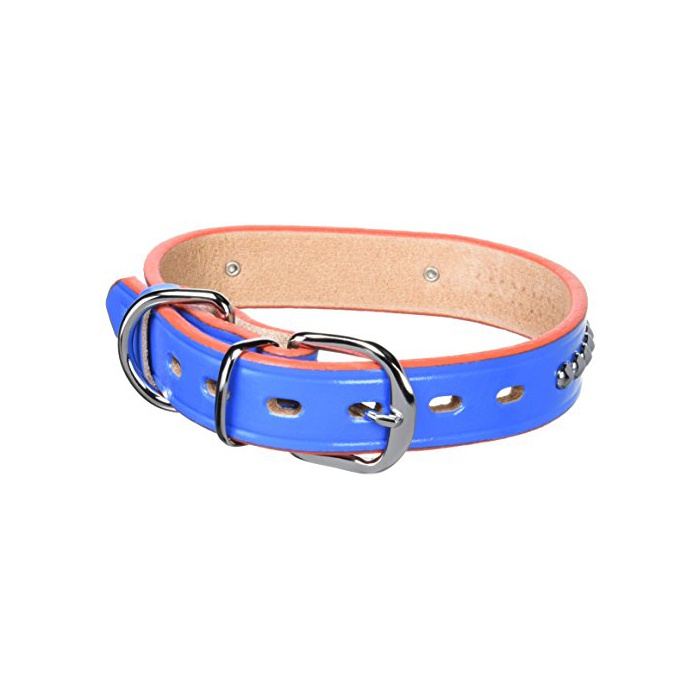 ONS 강력 한 장 가죽(껍질)평 목걸이 #24 청 (중형견)