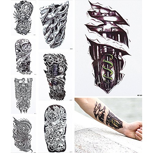 -. Title : 8 Pieces Machine Arm Pattern Design Temporary Tattoo Sticker Women Men Body Art Removable