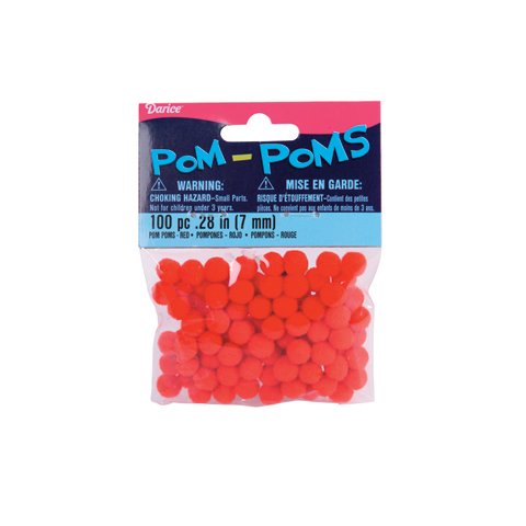 Product Description Use these red 7 millimeter pom poms to create whimsical miniature creatures or to accent all your other craft projects. Each package contains 100 pom poms. 0