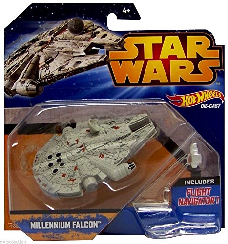 -. Binding : Toy -. Brand : Star Wars -. EAN : 6784290600907 -. Feature : Recreate the epic battles of Star Wars with this detailed replica of the Millennium Falcon! / Includes removable flight navigator that lets kids "fly" their starship on their finger / Removable flight navigator also doubles as a display stand so you can show off your collection / Die cast vehicle is in a collectible scale yet small enough to fit in your pocket / Makes a great gift or stocking stuffer for Star Wars fans of all ages! -. IsAdultProduct : 0 -. Label : Hot Wheels -. Manufacturer : Hot Wheels -. ProductGroup : Toy -. ProductTypeName : TOYS_AND_GAMES -. Publisher : Hot Wheels -. Studio : Hot Wheels -. Title : Hot Wheels Star Wars Millennium Falcon Die Cast Vehicle