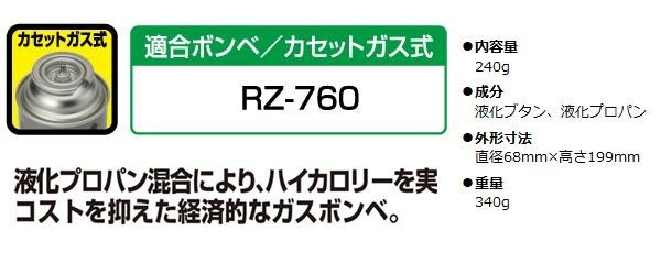 | 付属品 | 専用容器(ボンベ)RZ-760×1本、取扱説明書、保証書(1年) |