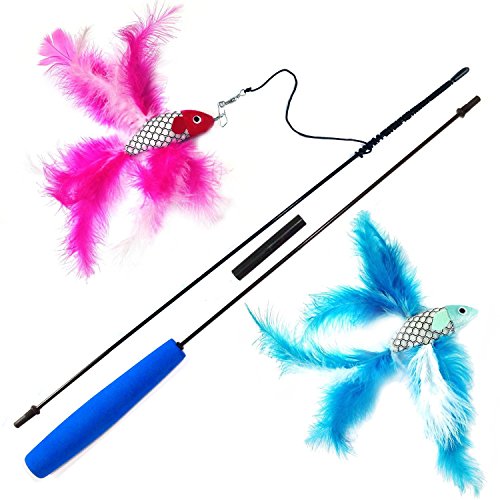 -. Title : Pet Fit For Life 2 Fish and Feather Teaser and Exerciser For Cat and Kitten - Cat Toy Interactive Cat Wand