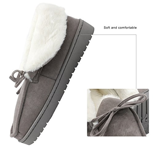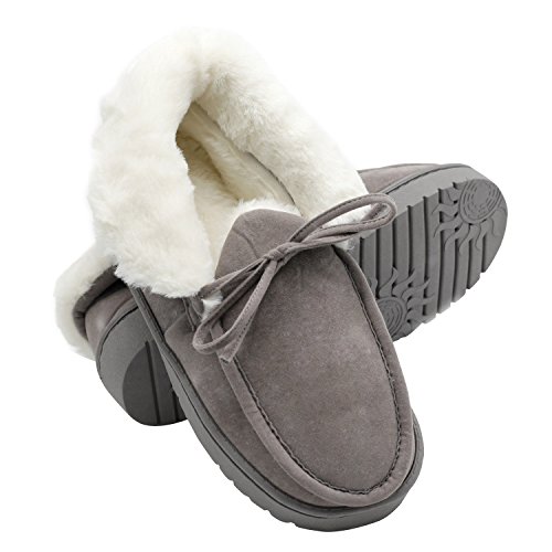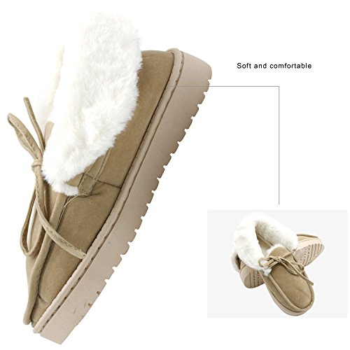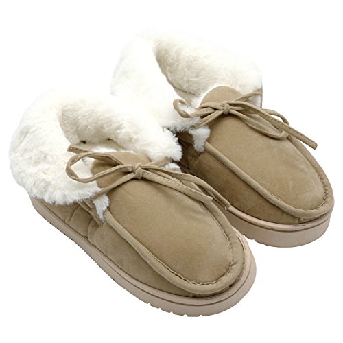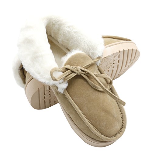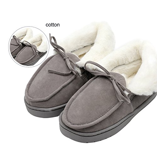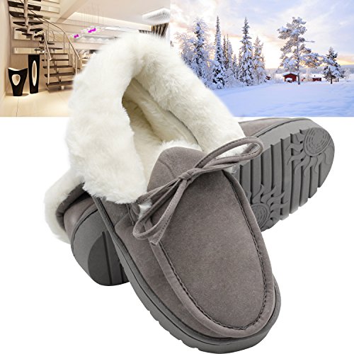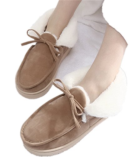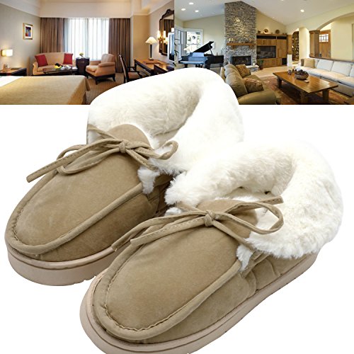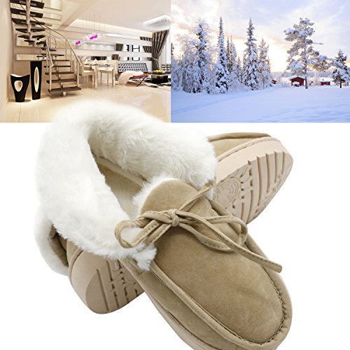 Get a new pair of Moccasin Slippers that fits your active lifestyle, especially in Autumn or Winter. Covered with breathable and soft upper, these slippers could wick moisture away to keep your feet refreshing and dry. Your feet will love to stay in these slippers because they provide softness, comfort and quiet. The padded and lightweight sole is a great choice for indoor use. Anti-skid texture in the bottom gives you a real stable feeling and prevent from scratching your floor when lounging around your house Care Instructions: ?¡eIf scuffs happen, no problem. Grab a suede brush or toothbrush and gently rub scuffs away. A suede brush or toothbrush works on watermarks and stains too - simply brush away the marks with water. ?¡eFor tougher stains, add a dab of cleaner or baby shampoo. Let your shoes air-dry overnight. Stick white tissue paper inside your shoes to make sure your vamp keeps its form while it dries. Please Note: If you are not sure about your size, measure your feet from heel to toe. Please find the below measurements for your reference. Measurement: Foot length: 9.25" | US 5-6 | UK 3-4 | EU 36-37 Foot length: 9.84" | US 7-8 | UK 5-6 | EU 38-39 Foot length: 10.43" | US 9-10 | UK 7-8 | EU 40-41 Foot length: 11.02" | US 11-12 | UK 9-10 | EU 42-43 Foot length: 11.61" | US 13-14 | UK 11-12 | EU 44-45 Customer Are Our Priority: We offer 100% no risk money-back guarantee if you?¡¥re not thrilled with your purchase for any reason. Just tell us and we will do our best to give you the most satisfactory solution.