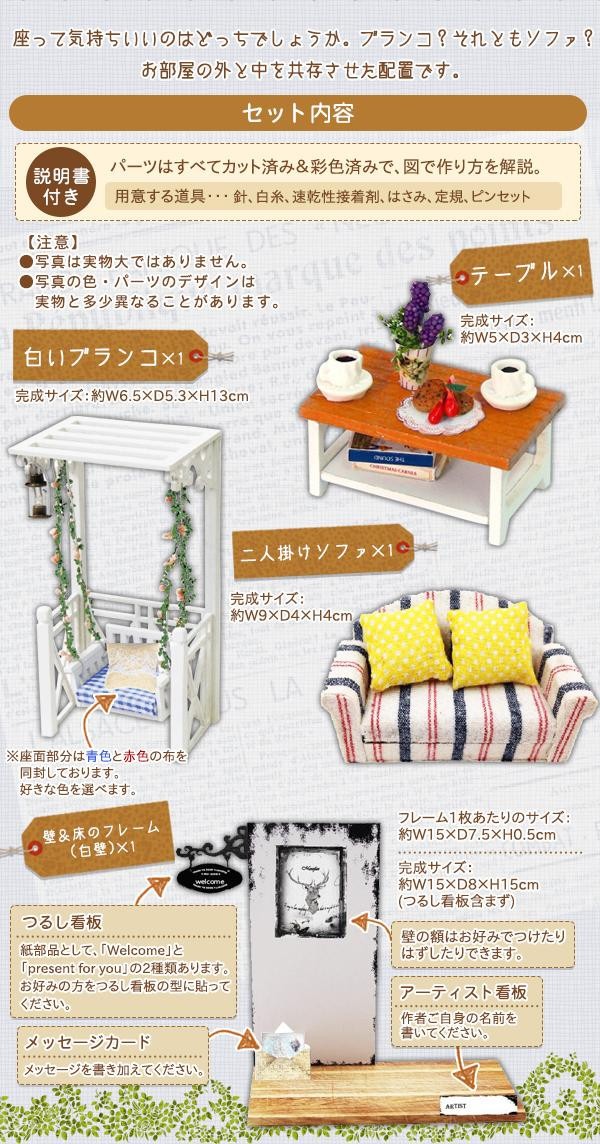 | セット内容 | 白いブランコ×1 二人掛けソファ×1 テーブル×1 壁&床のフレーム(白壁)×1 説明書 |