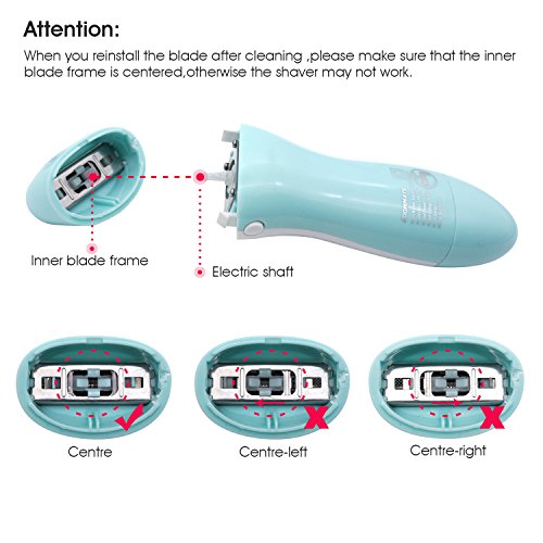 - *ATTENTION PLEASE*: When you reinstall the blade after cleaning, please make sure the inner blade frame is centred, otherwise the shaver may not work. (Picture 5.) [Two-year Guarantee]If you are not satisfied with our product, just return it for a full refund. We will give you the 100% Satisfaction Guaranteed!