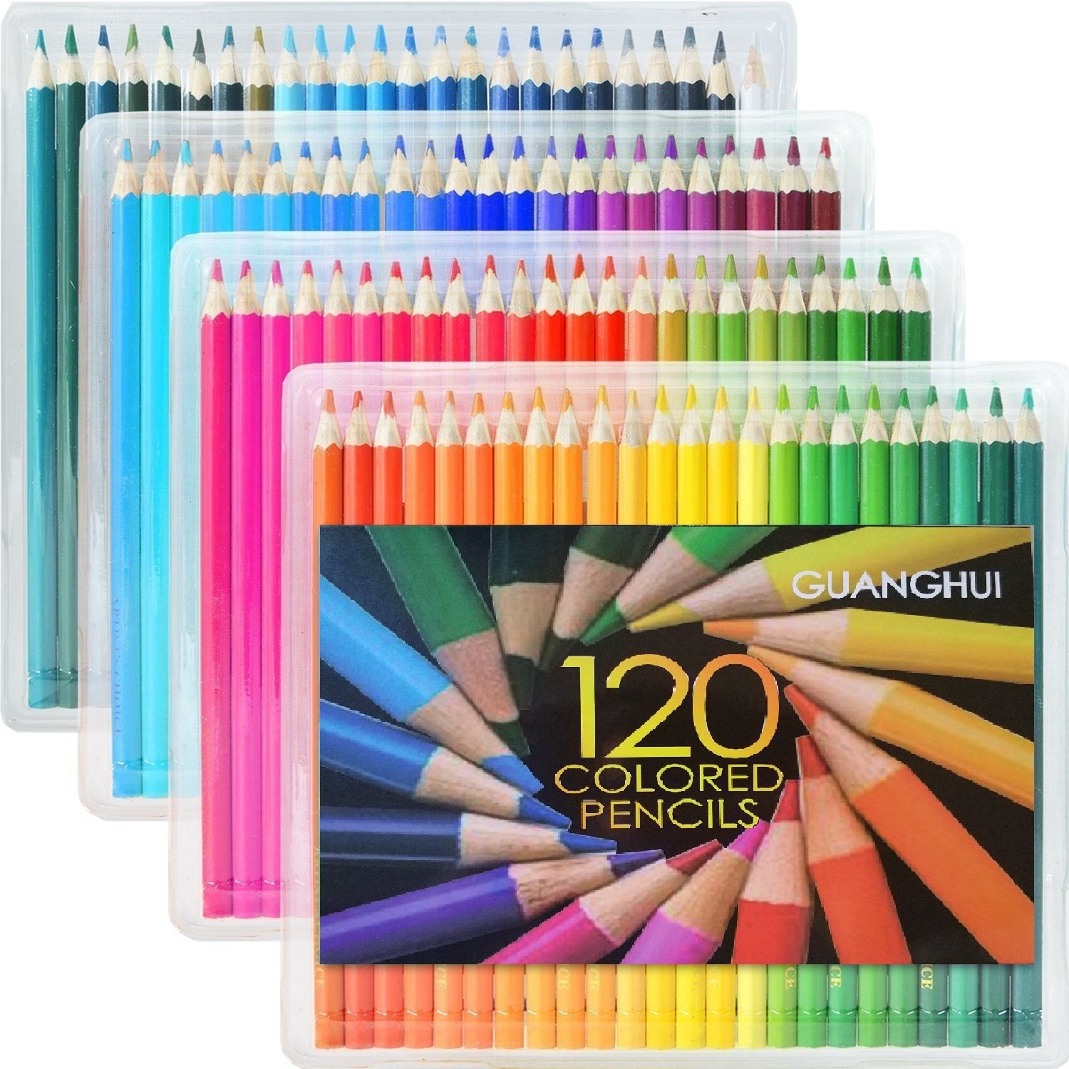 A total of 120 colored pencils, with 30 in each transparent case and 4 in each.