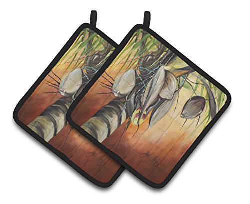 Caroline's Treasures Orange Coconut Tree Pair of Pot Holders JMK1280PTHD, 7.5HX7.5W, Multicolor