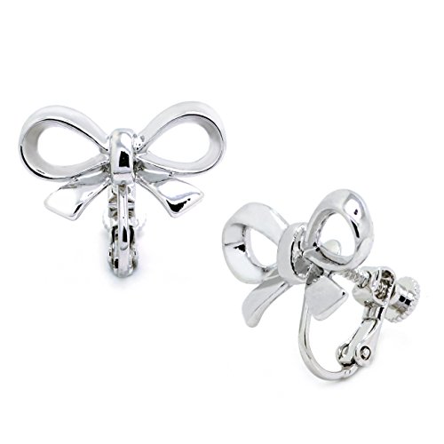 These lovely earrings are made of alloy base metal and are featuring a bow ribbon design with shiny polihed finish. Adjustable screwback clip on backings secured these hoop earrings with ease and comfort. For non pierced ears. These fashion clip on earrings will make the perfect choice for your special someone for Valentine's gift, Christmas gift, Mothers day gift, Birthday gift, Anniversary Gift, or Bridal party gifts.Feature