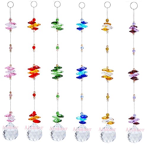 Aiskaer 6PCS 1.2 Inch Colorful Chandelier Crystal Ball Prisms Pendant, Chandelier Decor Hanging Prism Ornaments,Chandelier Crystals Ball window Prisms Rainbow Octogon Chakra Suncatcher