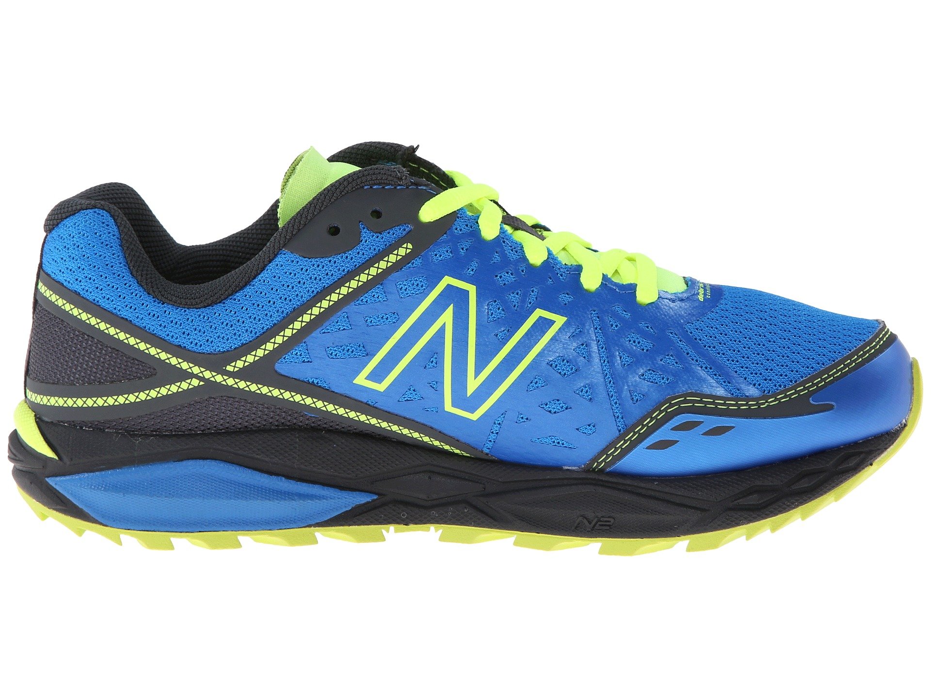 | Product Information SKU: #8443481Go the distance, and some, in the New Balance? WT1210v2 trail-running shoe!Successor to the MT1210 (no longer available).A trail runner that boasts reliable stability and responsive cushioning. Breathable mesh upper with lightweight, flexible synthetic overlays. Fantom Fit at the mid-foot provides ultralight upper support.Limited seam construction helps reduce irritation. Gusseted tongue helps keep debris out. Sure lace.Toe Protect reinforcement.Plush tongue and collar. Antimicrobial treatment promotes a healthier in-shoe environment. Breathable fabric lining for a great in-shoe feel.Molded foam insole offers additional cushioning. REVlite midsole supplies exceptional responsiveness and durability, while boasting a 30% lighter weight than comparable midsole foams. N2 low-profile midsole provides responsive, durable and sustainable cushioning. Medial post helps prevent pronation. Differential: 8 mmVibram? outsole delivers maximum surface contact and multidirectional traction. UL last allows the foot to expand during longer runs. Imported. Product measurements were taken using size 9, width D - Wide. Please note that measurements may vary by size.Weight of footwear is based on a single item, not a pair.Measurements: Weight: 9.5 oz |