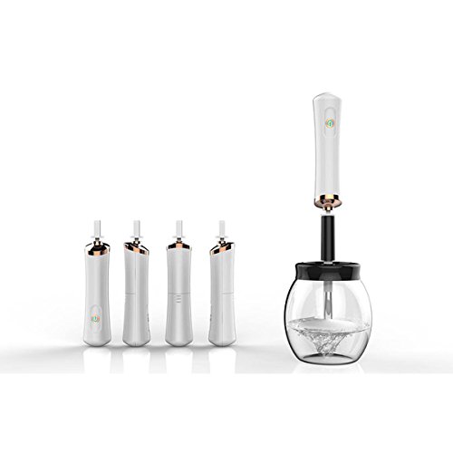 [Easy to Operate] Just 4-step operation. First, Pour soapy water into the bowl. Second, Attach your brush to the cleaner. Third, Put the brush head into the bowl. Forth, Raise & spin to dry.(long press once to turn on/off).