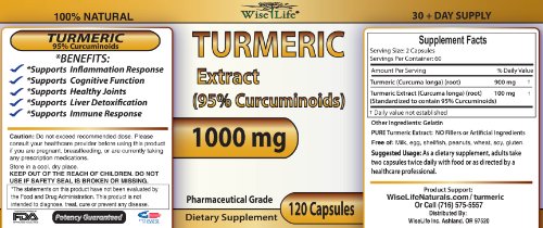 -. Title : WiseLife Premium Turmeric Curcumin Longa Root Powder Extract Pills for Anti inflammatory and Stress Reliever Inflammation Diet with No Side Effects 120 Capsules 95% Curcuminoids