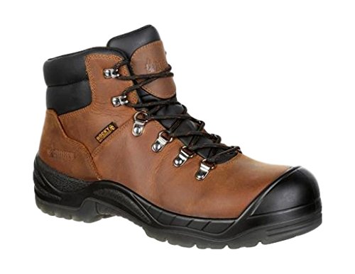 Studio : Rocky Publisher : Rocky Binding : Apparel Product Description Mens Rocky Work Boots: Work in comfort! These men's lace work boots from Rocky have a guaranteed Rocky waterproof construction; direct-attach lightweight PU/TPU oil resistant outsole; and full grain leather upper. They have ASTM F2413 protective toe classification; ASTM F2413 electrical hazard standard; and high abrasion toe. Check out the abrasion resistant outsole; defined heel; and 5" shaft height. Come take a look at the non removable cushioned footbed; composite toe; and ½" heel height. Last but not least they have a chemical resistant outsole and a round toe. RKK0245 0