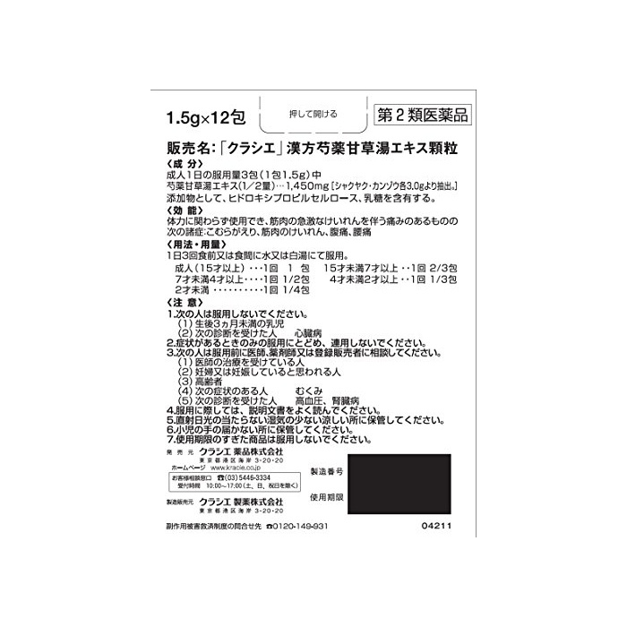 원본상품명: 【第2類??品】「クラシエ」漢方芍?甘草湯エキス顆粒