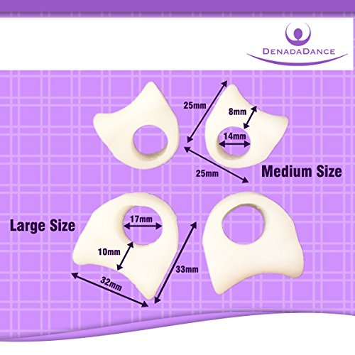 DenadaDance Toe Spacers Set of 4 - 2 Large & 2 Medium Soft Gel Toe Spreaders - Work as Bunion Splint or Straightener for Overlapping Toes - Hallux...