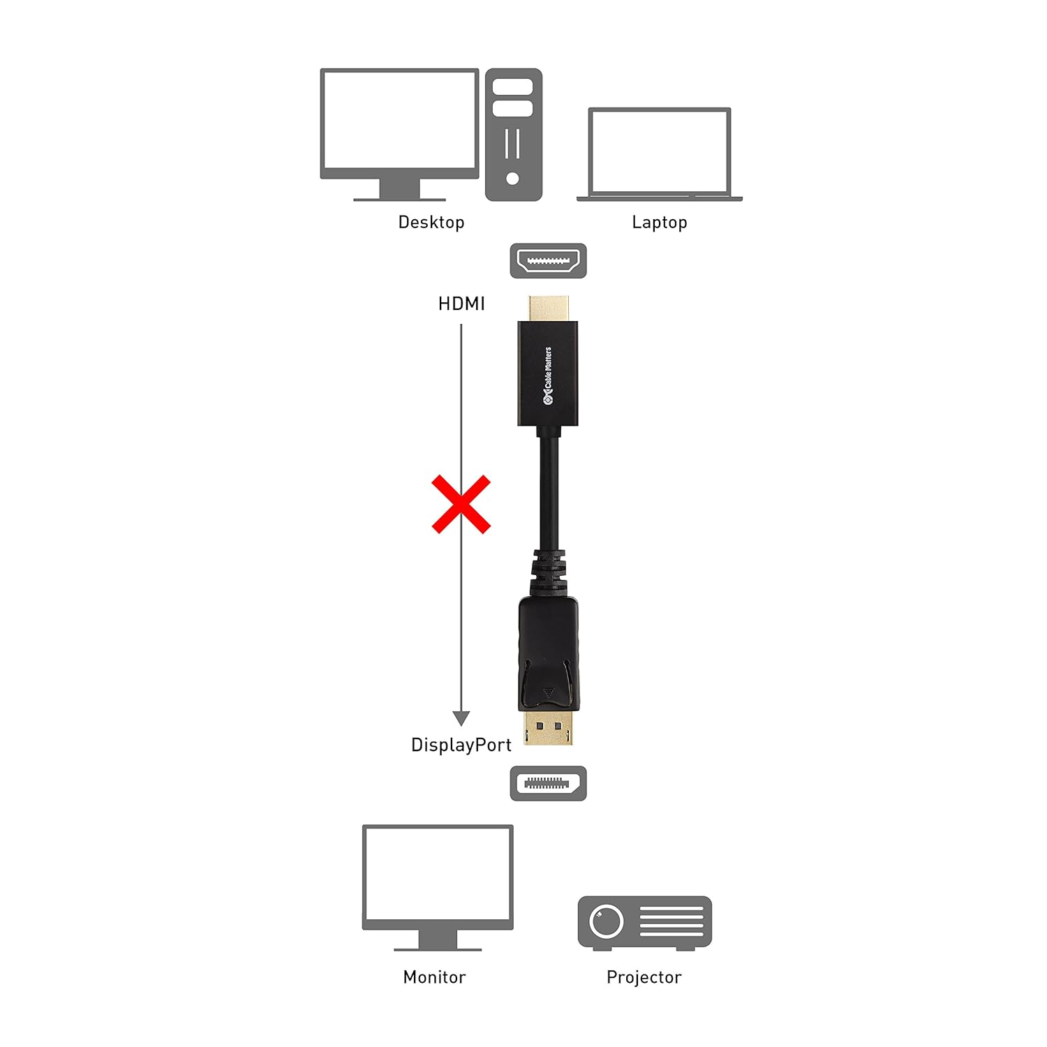 - Convenient cable directly connects a DisplayPort (DP, DP++, DisplayPort++) equipped computer to an HDTV, monitor, or projector with HDMI input