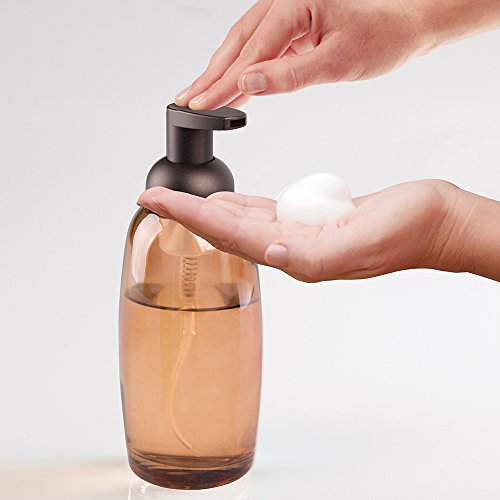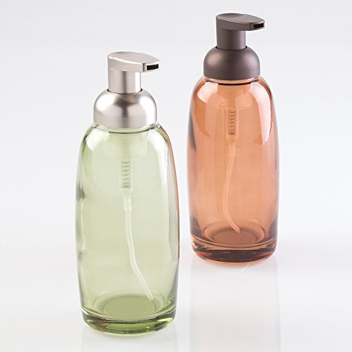 mDesign Glass Foaming Soap Dispenser Pump 2pc Bathroom Accessory Set - Green/Brushed, Sand/Bronze