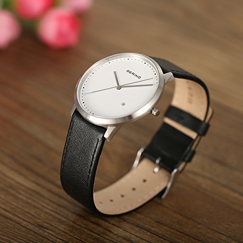 -. Title : BERING Time Men's Classic Collection Watch with Leather Band and scratch resistant sapphire crystal. Designed in Denmark. 11139-404