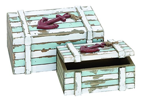-. Title : Deco 79 Wood Box Nautical Maritime Decor, 10-Inch by 7-Inch, Set of 2